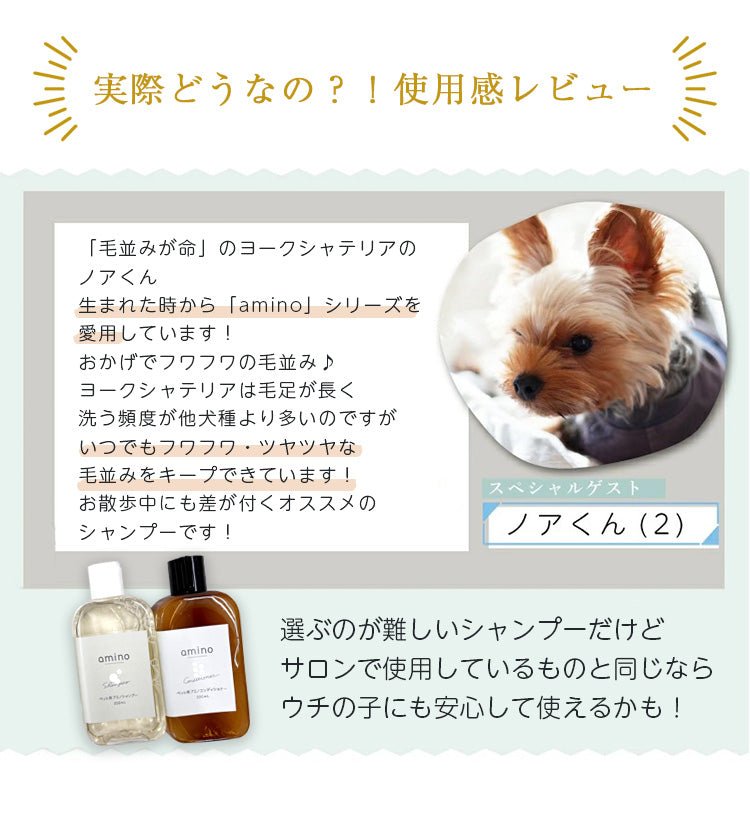 | 商品名 | 低刺激ペットシャンプー amino シャンプー&コンディショナーセット | |||