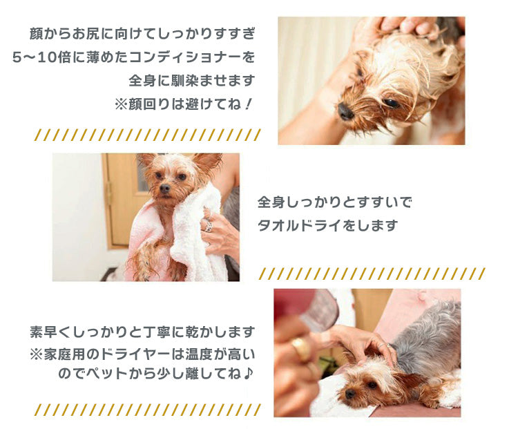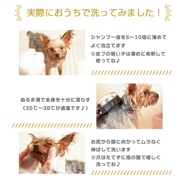 | 商品説明 | 当実店舗でも使用する、プロ監修のペット用低刺激シャンプー・コンディショナーをご自宅までお届け致します。 ・植物由来のアミノ酸を贅沢に配合した濃縮タイプ。5倍~10倍程度に希釈して使用して下さい。 ※肌のデリケートなペットにはより薄めてお使い下さい。 ・炎症を抑える成分で高い効果がある植物由来のコンフリエキスを配合、炎症や刺激を軽減。 ・香りはリラクゼーション効果と防虫効果が期待できる「カモミール」 |
